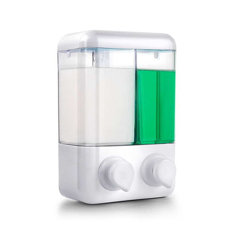 El diseño permite dispensar dos productos distintos, como Jabón Líquido y Alcohol Gel, o Jabón para Manos y Detergente para Platos, con solo presionar las palancas individuales. Está fabricado en materiales de alta resistencia (ABS o acero inoxidable, según el modelo) para garantizar una larga vida útil y un uso continuo