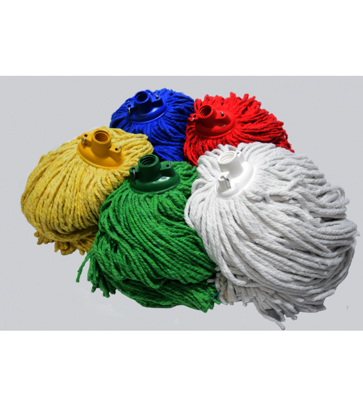 La cabeza del trapero está fabricada con fibras de alta calidad (como algodón, microfibra o mezclas sintéticas) que garantizan una máxima capacidad de absorción de líquidos y suciedad. Su diseño robusto permite un escurrido eficiente, reduciendo el tiempo de secado y optimizando el uso de desinfectantes y detergentes.